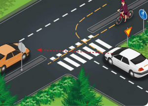 Aloitetaan analysoimalla erästä yleistä onnettomuutta, Liikenneturvan ehdottamia ratkaisuja, ja niiden vaihtoehtoja. Kääntyvä auto törmää pyöräilijään useiten silloin, kun auto tulee sivutieltä päätielle ja kääntyy oikealle, ja pyöräilijä tulee oikealta. Sivutieltä tuleva autoilija on liikennemerkillä merkitty väistämisvelvolliseksi, joten hänen tulee väistää vasemmalta tulevia autoja ja molemmista suunnista tulevia pyöriä. Oikealta tulevia autoja ei tarvitse väistää, sillä ajolinja niiden kanssa ei leikkaa. Autoilijan huomio keskittyy vasemmalta mahdollisesti tuleviin autoihin, ja pyörä jää huomiotta. Missään muussa kääntymistilanteessa autoilijan huomio ei ole näin pahasti poissa pyöräilijästä, ja se näkyy onnettomuustilastoissa.