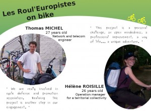 Ranskalaiset Thomas Michel ja Helene Roisille aikovat ensivuonna tutkailla Eurooppalaista pyöräilykulttuuria ja pyöräilyoloja kuusi kuukautta (huhti-lokakuu) kestävällä 7000 kilometrin matkallaan. Alustavien suunnitelmien mukaan 17 eri maahan ulottuvalla matkaltaan he tekevät videon, lehtiartikkeleita, kirjoittavat blogia ja julkaisevat vertailevan tutkimuksen pyöräilyoloista.