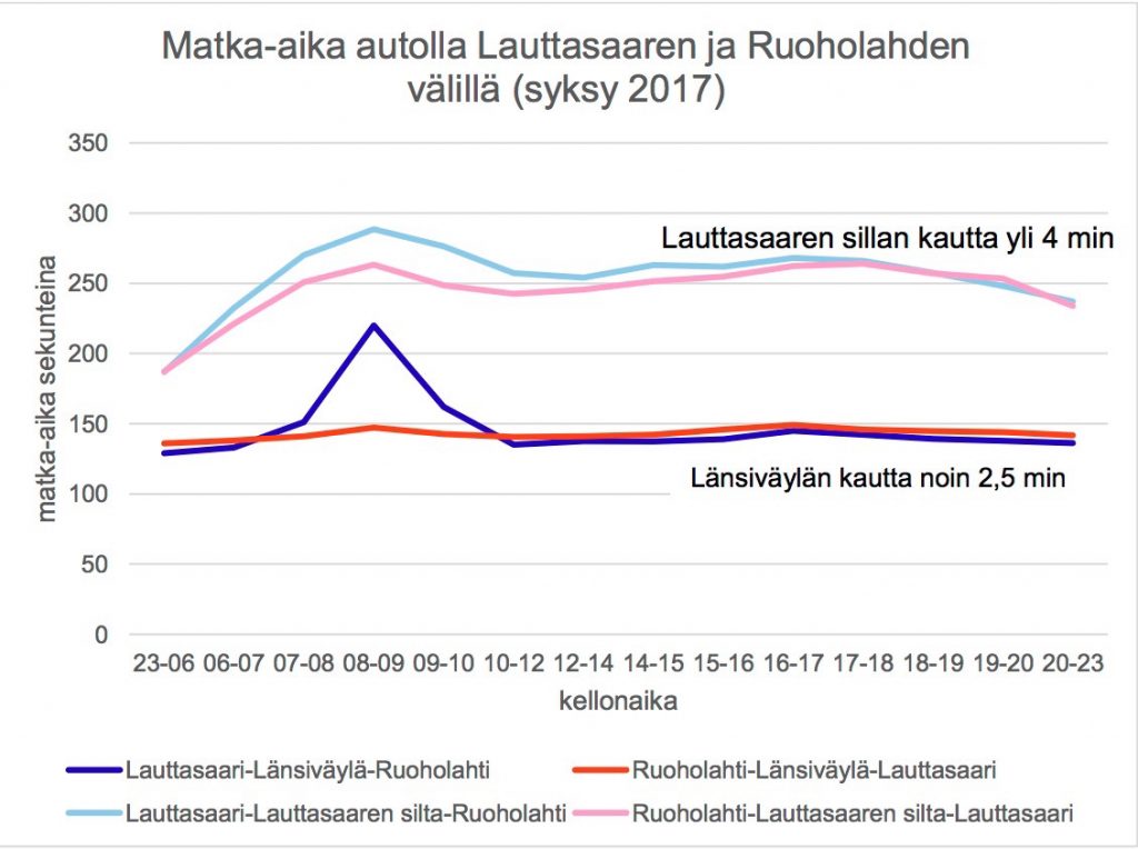 Autoliikenteen määrät Lauttasaaren sillalla ovat laskussa