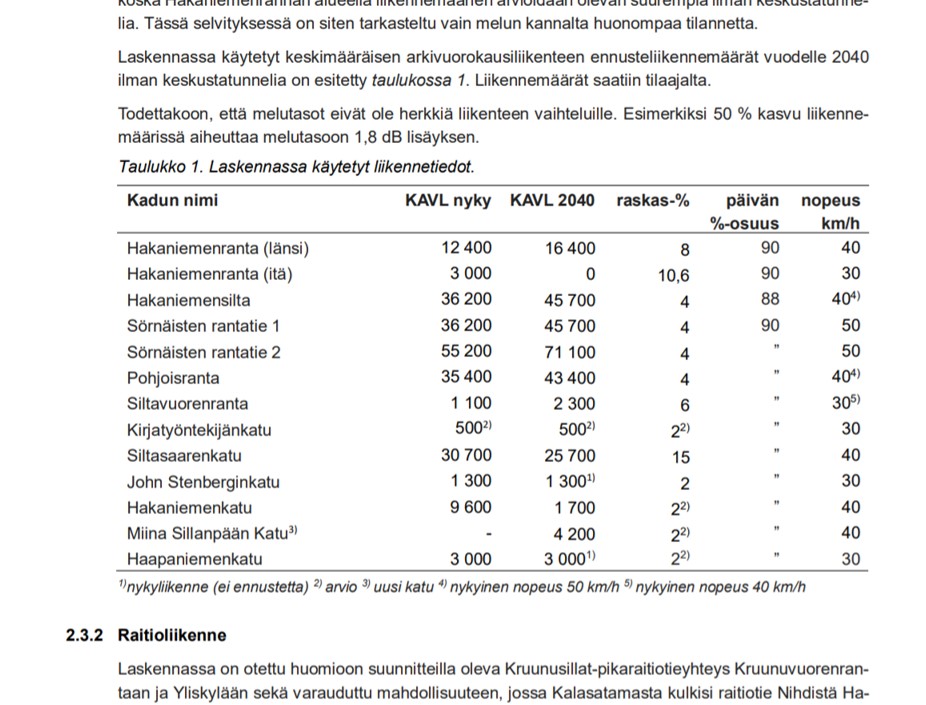 Helsingin strategioissa (liikkumisen kehittämisohjelma ja yleiskaava) ei haluta riittävän selkeillä sanoilla ottaa kantaa yksityisautoilun lisääntymiseen. Kestävistä kulkumuodoista on paljon puhetta, mutta autoilun lisääntymistä ei ole haluttu mitenkään estää. Hakaniemen suunnitteluaineistossa oli mukana liikennemeluselvitys, missä on tilastoitu nykyiset määrät sekä ennuste vuodelle 2040. Liikenne näyttää lisääntyvän merkittävästi Sörnäisten rantatiellä, Hakaniemen sillalla sekä Pohjoisrannassa.