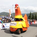 Kuhina tapahtuman ympärillä on huikeaa. Ranskan televisio selostaa jättiscreeniltä ranskaksi, kylän kuppiloissa voi kuunnella englanninkielistä selostusta satelliittikanavilla. Ylämäissä pyöräilijät melkein revitään kumoon. Maalialueella yleisöä viihdytetään koko päivä, muun muassa jakamalla käsittämätön määrä ilmaista krääsää. Hieman ennen pyöräilijöiden maaliintuloa maalialueelle saapuu kymmenien autojen letka, joka viestii yleisölle pääsponsoreiden terveiset kanaravintoloista auto- ja kellomerkkeihin sekä Carrefour-ruokaketjuun.