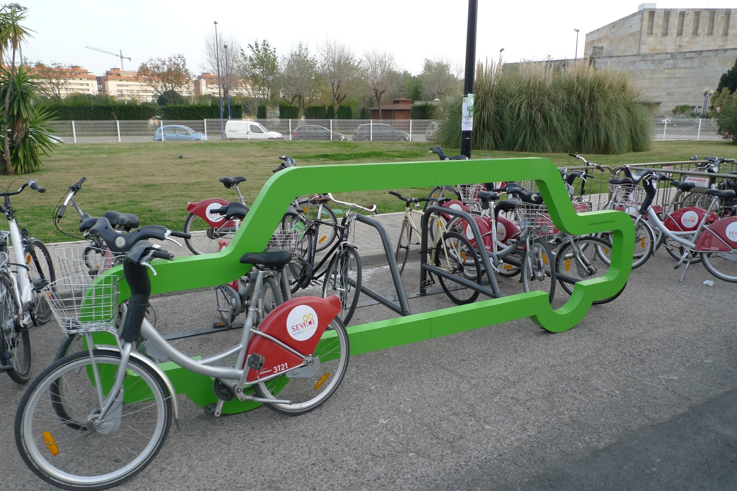 Cyclehoopin pyöräteline Sevillassa velo-city-messuilla. Tälläisiä tulee Helsinkiinkin