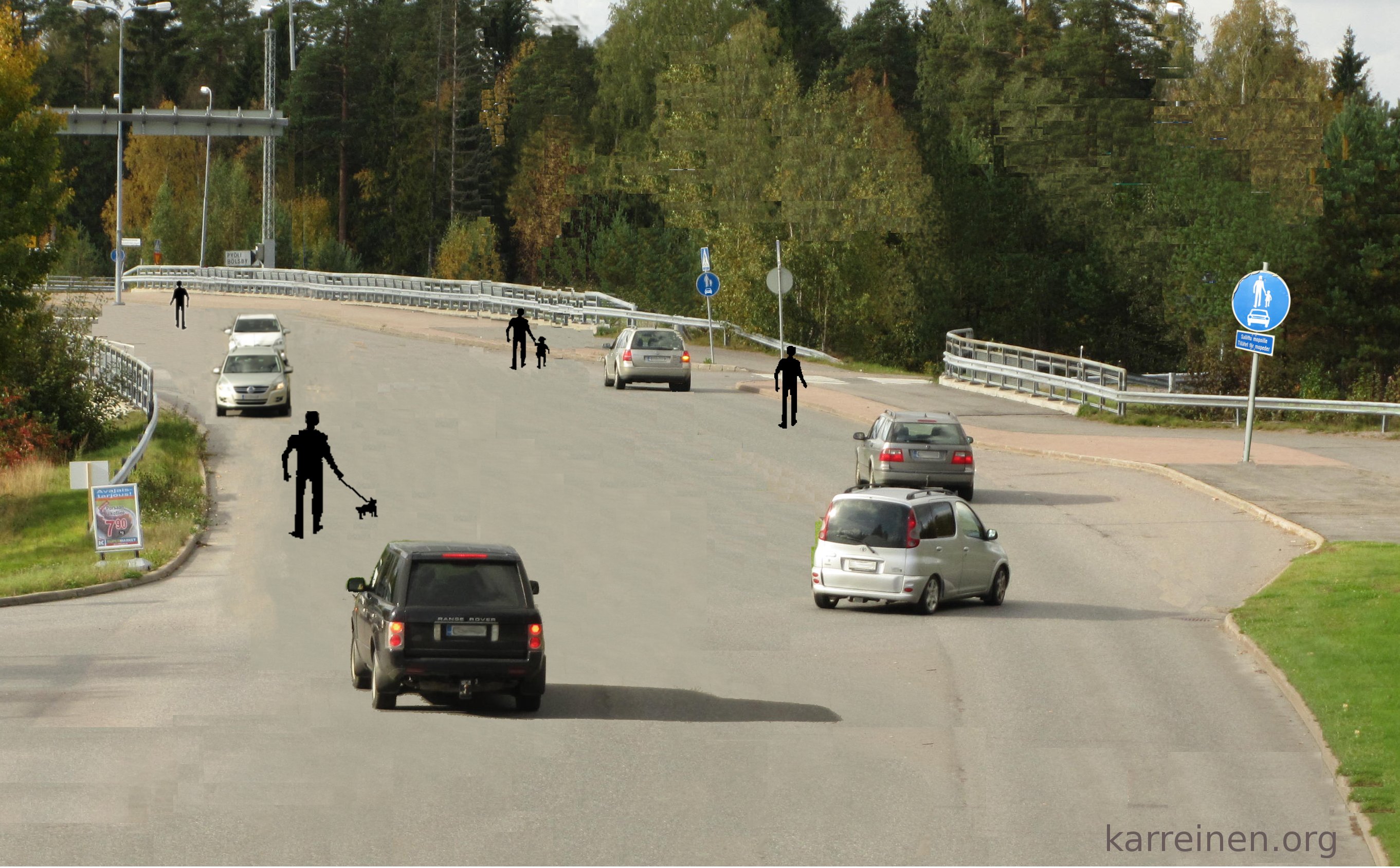 Lontoon pyöräkampanjan miltä autotietä näyttäisivät jos niitä käytettäisiin kuten pyöräteitä innosti tekemään oman version. Miltä autotie näyttäisi, jos se toimisi kuten yhdistetty kevyenliikenteen väylä?