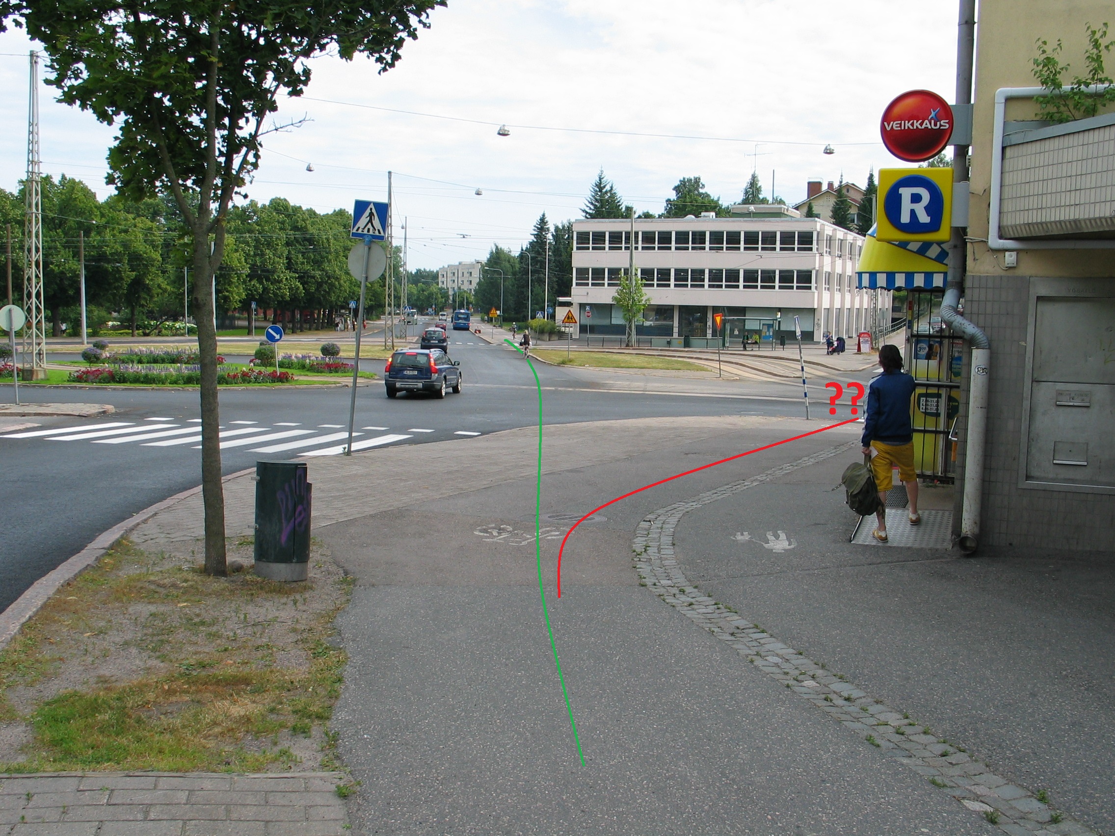 Liian huonoja? Nehän ovat juuri niitä samoja, joita nyt yritetään ajaa vieläpä molempiin suuntiin vastaantulijoita väistellen. Myöhemmin voidaan suorittaa yksittäisinä tai tele-, lämpö, kaasu- tai sähkökaivuun aikaisina muutoksia pysäkkialue- ja risteyskorjauksia, kolmitasoista erottelua ym. hyviä ulkomailta opittua käytäntöjä. Nyt vain muutos aikaiseksi, niin lupaan että pyöräijät oppivat ajamaan niillä, sekä tulevat vaatimaan niitä lisää. Muutos ei synny tällä blogitekstillä, nyt tarvitaan joukkoja niitä vaatimaan.