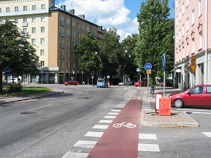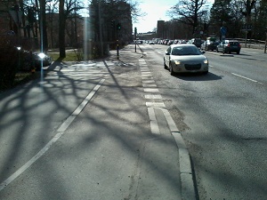Helsingissä pyöräväylää ei nähdä vaarana, sillä sinne eksymistä ei maalattu erotteluviiva estä. Vasta ajorataa pidetään ehdottomana vaarana, minne pyörätiellä hortoilevaa sokeaa ei haluta päästää, joten joku on keksinyt laitatuttaa reunakiven pyörätien ja ajoradan väliin. Täysin järjetön ajatus, mistä ollaan toivottavasti pääsemässä eroon. Myös yhdisteväylistä olisi syytä päästä eroon mahdollisimman pian. Viimeistään lisääntyvä pyöräily konkretisoi väylien huonouden ja vaarallisuuden.