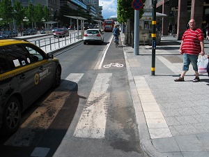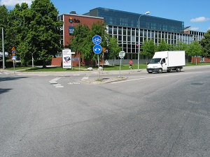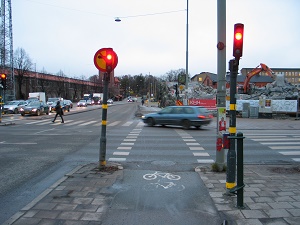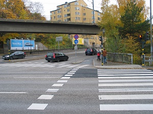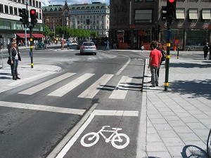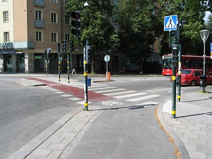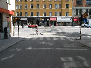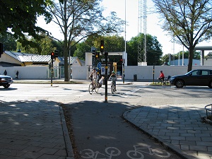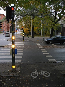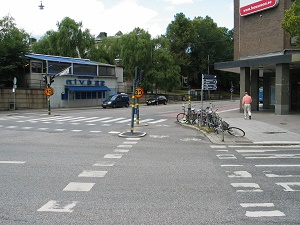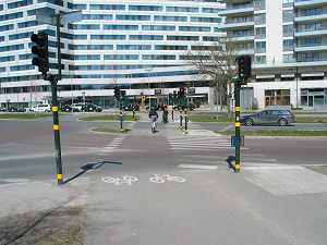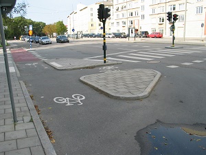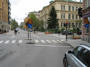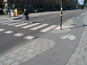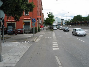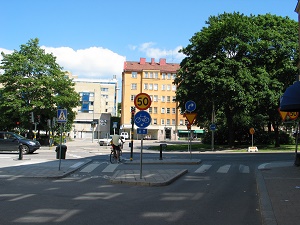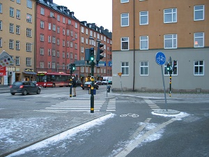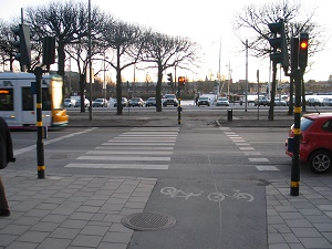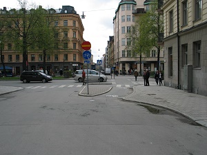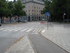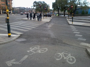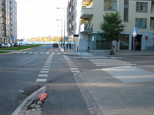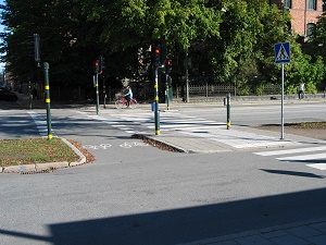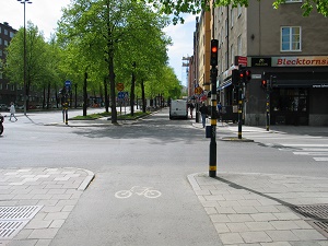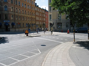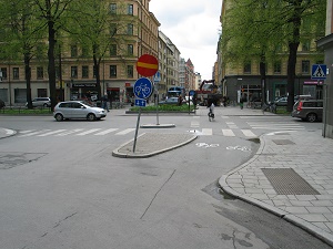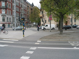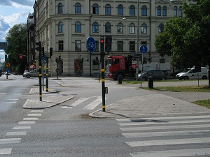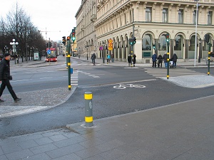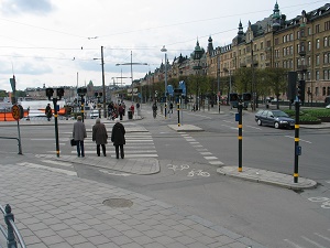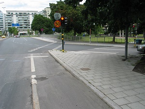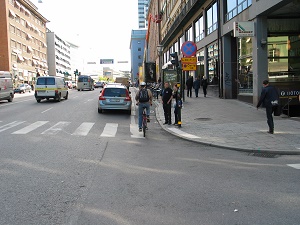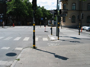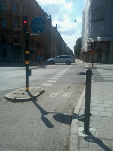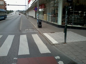 Helsingissä on jostain kumman syystä haluttu estää vain ajoradalle pääsy, koska pyöräilyhän ei ole äänetöntä, vaarallista, tai edes liikennettä. Kun taas Tukholmassa näkövammaiset yritetään pitää mahdollisimman hyvin poissa sieltä missä heidän ei kuulu liikkua (pyörätie, ajorata, oja, meri,…).