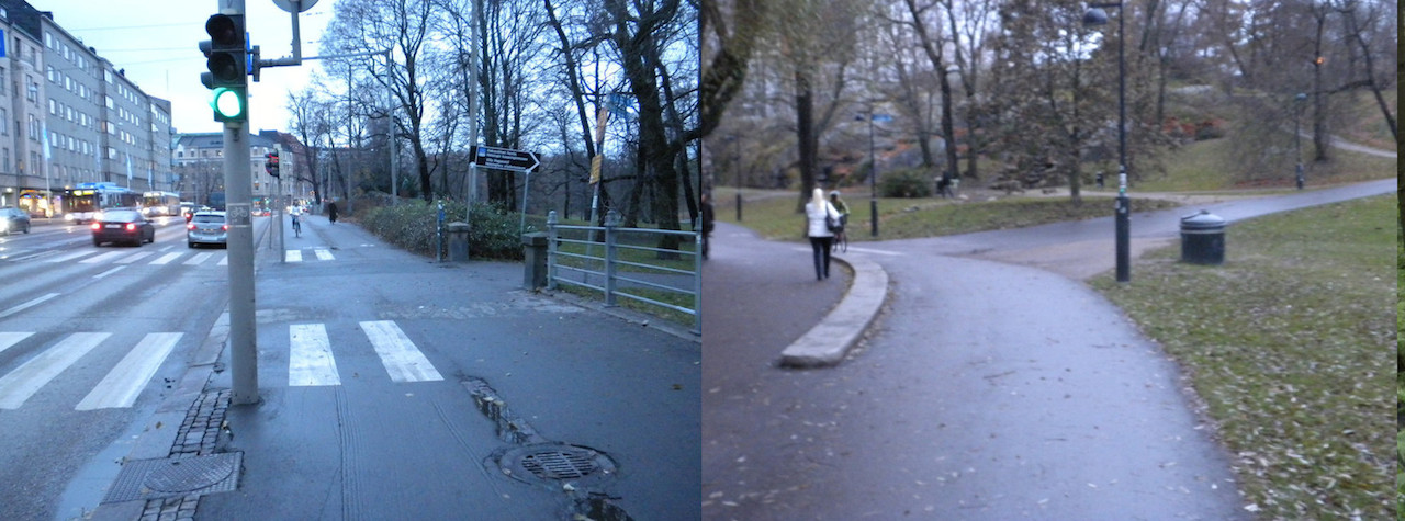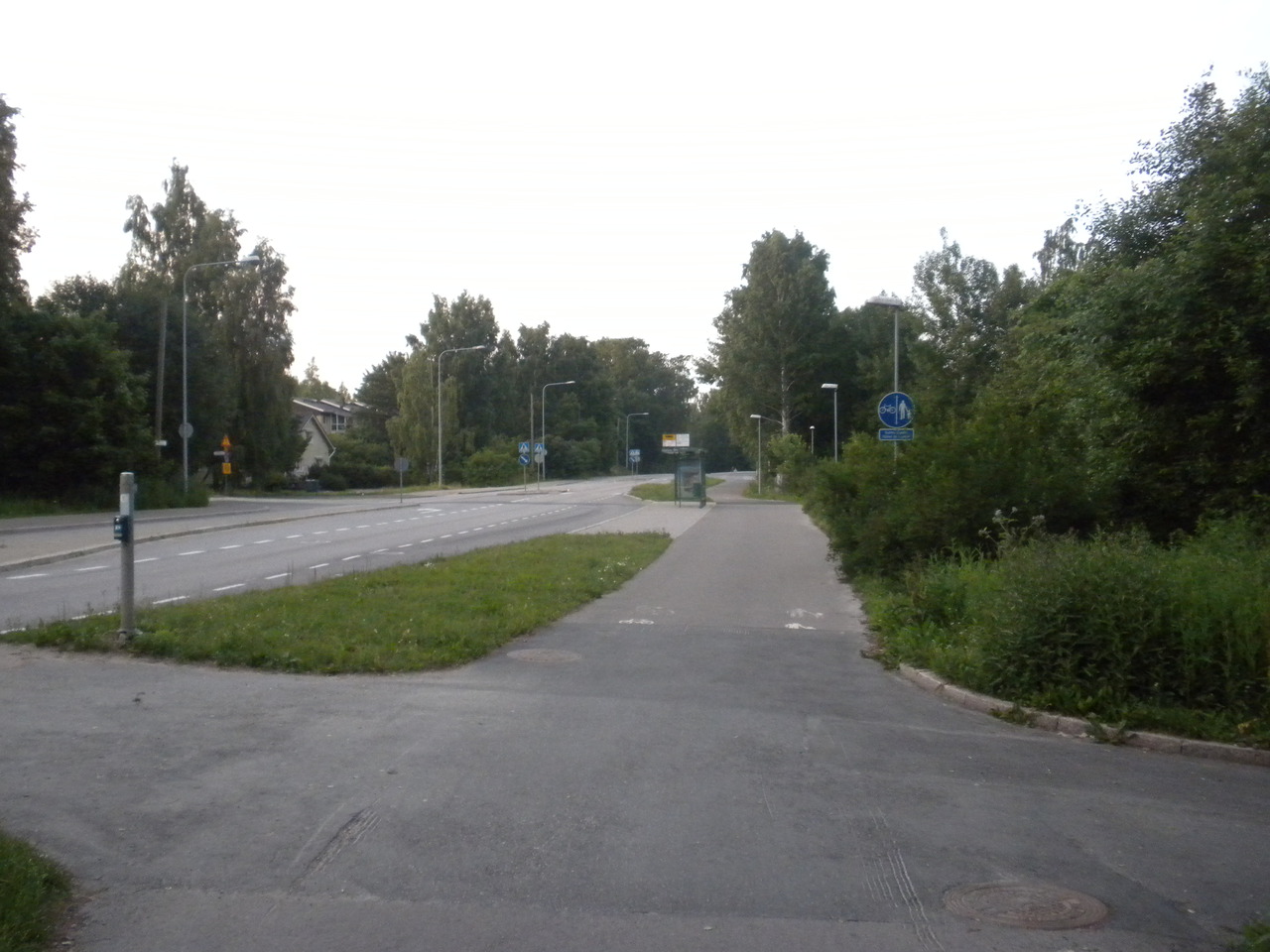 Vasemmalla kadunvarren pyörätie, oikealla metsäpyörätie.