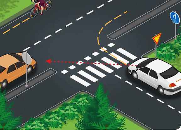 Väistämissääntöjen hienoudet eivät ole Liikenneturvalla hallussa. Huomioi, ettei kuvassa ole suojatietä.