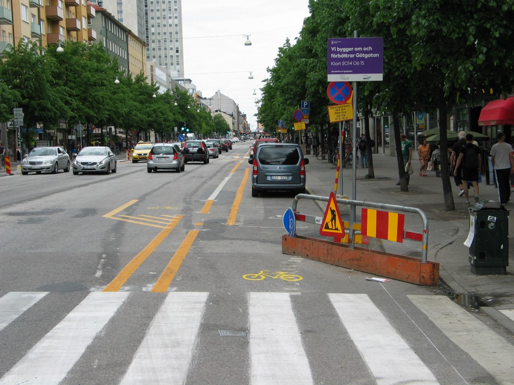 Södermalmilla sijaitseva etelä-pohjoissuuntainen Götgatan on parhaillaan päivityksen alla. Vuonna 2001, eli 13 vuotta sitten sinne valmistui ensimmäinen versio, missä pyöräliikenne sai omat yksisuuntaiset pyöräväylänsä: yksi kortteli pyöräkaistaa ja loput pyörätietä. Sitä ennen katua hallitsi viisi ajokaistaa, mutta vuoden 2001 uudistuksessa yksi ajokaista poistettiin, jotta pyöräväylille saataisiin hyvä tila.