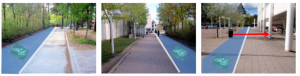 1. Tämä kuva mihin olet lisännyt keltaisen ja punaisen viivan, voisiko koko pyörätien jatkeen poistaa, jolloin ajaminen tapahtuisi osana ”katuverkkoa” risteyksen kohdalta. Näin tehtynä myös väistämisvelvollisuuden ymmärtäminen ja erottelu olisi selvempää ja parempaa. Ylipäänsä kaikkialla missä poikkikadulla on sekaliikenne ja pääkadulla pyörätie, liittymiset ja erkaantumiset olisi hyvä suorittaa risteyksen kohdalla, risteyksissä, ei muutaman mertin päässä olevalla pyörätien jatkeella. Joten jos kuvasta poistaisi (tai siirtäisi) katupuun joka on pollarin vieressä, niin pyörille (sekä tulevat että lähtevät, olettaen että nämä ovat kaksisuuntaisia) tulisi selkeä ja looginen reitti. Sillä itse en ajaisi kumpaakaan viivaa (kelt. tai pun.) vaan samoin kuin ajoneuvot, mutta jatkaen pyörätiellä.