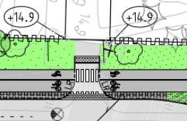 Yksityiskohtainen suunnittelu esitetään rakennussuunnitelmissa, joita laaditaan parhaillaan. Reunatukien käyttö liittyy ympäröivän katu-alueen korkotasoon ja hulevesien hallintaan. Pyörätien jatkeen toteuttaminen samassa tasossa, ilman luiskattuja reunatukia tarkastellaan rakennussuunnittelun yhteydessä.