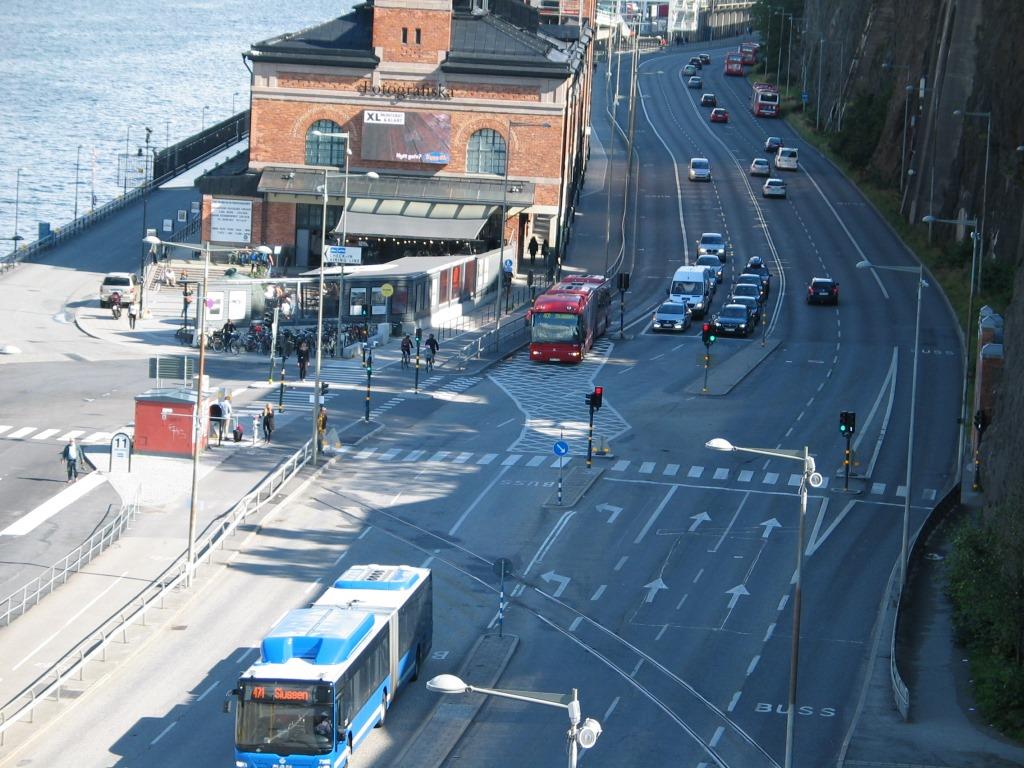 Vasemmalla Ratapihantie, oikealla Hamngatan, Tukholma. Myös logistiikka tarvitsee tilansa.