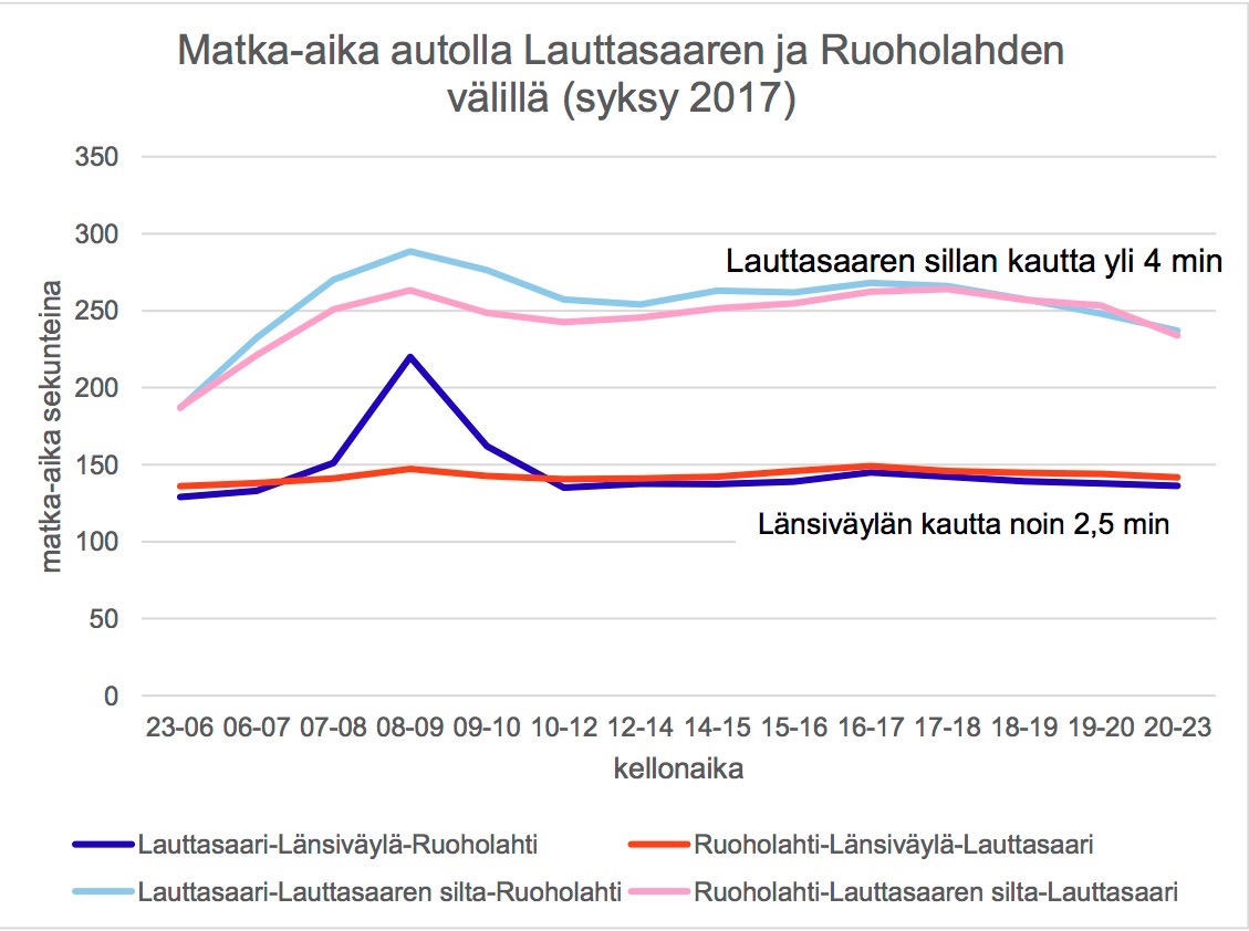 Länsiväylä on tälläkin hetkellä nopein reitti autolla Lauttasaareen