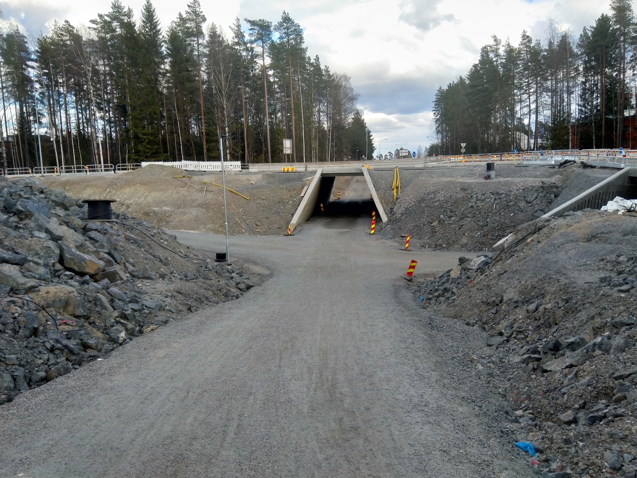 Keskusairaalantie-Savelankatu -alikulkumonttu vielä ennen asfalttipintaa. Kuvasta kuitenkin hahmotettavissa hurjat korkeuserot sekä näkemäongelmainen risteys johon tullaan monesta suunnasta vauhdikkaasti mäistä. Kuva: Teemu Tenhunen.
